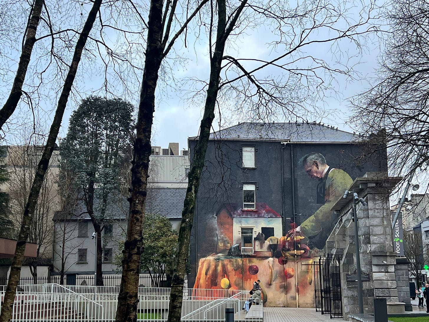At one pub I talked with a retired train mechanic who was glad he got out when he did because “the AI is going to make slaves of us all.” At another, after watching a Goth couple lug a massive suitcase up to the bar and onto a stool, and begin extracting from it some witchy-looking paintings that they then hung around the pub, we talked about artistic inspiration. (“It’s my inner Goddess who speaks to me,” the artist explained, while her boyfriend nodded his man-bun appreciatively). I followed that with a chat with the owner about how both Guinness and Beamish had recently raised their prices, and how he was trying to not pass that on to customers by convincing them to drink more.