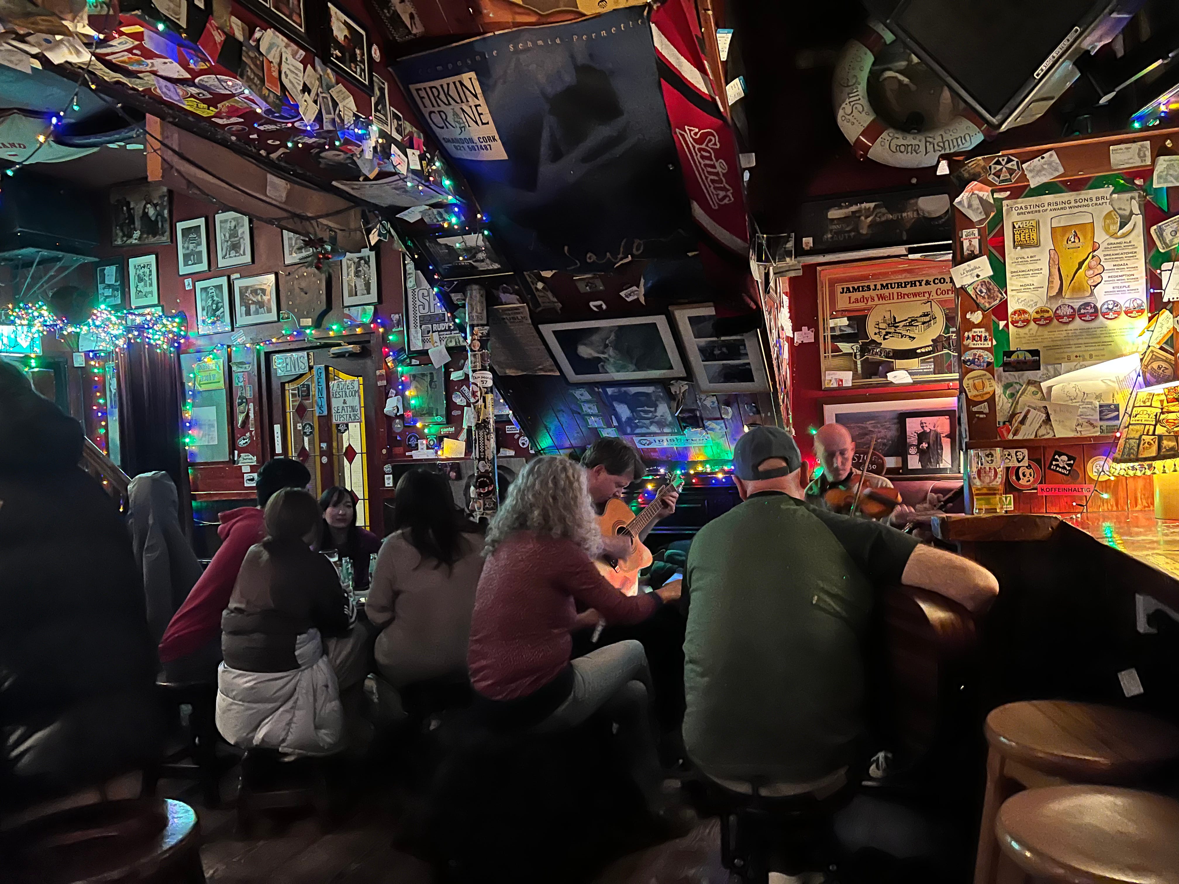 Admittedly, my first conversation was with a Spaniard. Daniel worked at the hotel I found about a hundred meters from where the bus from the Dublin airport let me off, and it turned out that everyone else working there was Spanish too (thank you very much, Brexit). But we had a fine conversation about what brought him to Cork, and when I asked him what I should do while I was in town, he told me I definitely wanted to go hear some Irish music, and he recommended a place down the street called Sin é, which he said means “that’s that” in Irish–”like ‘se acabó.”. Which is funny, he chortled, because it’s right next door to a funeral parlor.